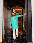 ThisAQUA BLUEB Kurta with PAIJAMA Sequin Embroidery WORK Created by Kurta Zone This Hand-stitched Kurta Is Made of 100% Pure Cotton Fabric With Having embrodry havy work Over It. Our Attractive Prints Add More Charm to Your Look, Wear This at Any Time Because the Fabric Is So Smooth to Skin That You Will Love It.