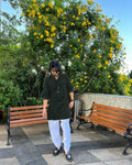 BLACK mirror work embroidery kurta. Comes with PATIYALA.