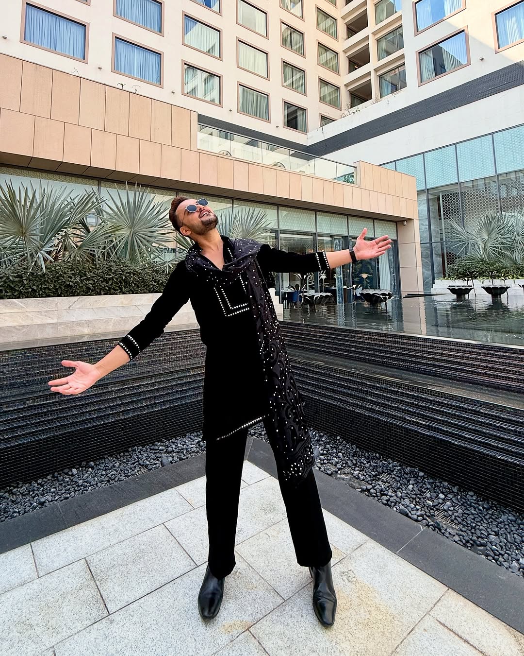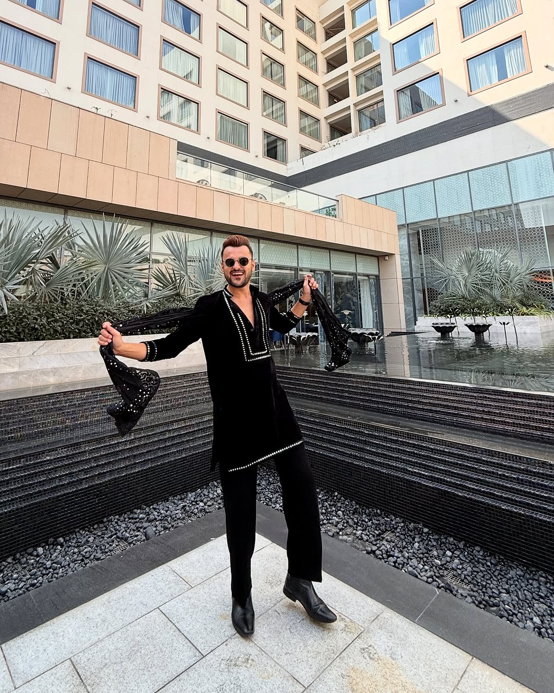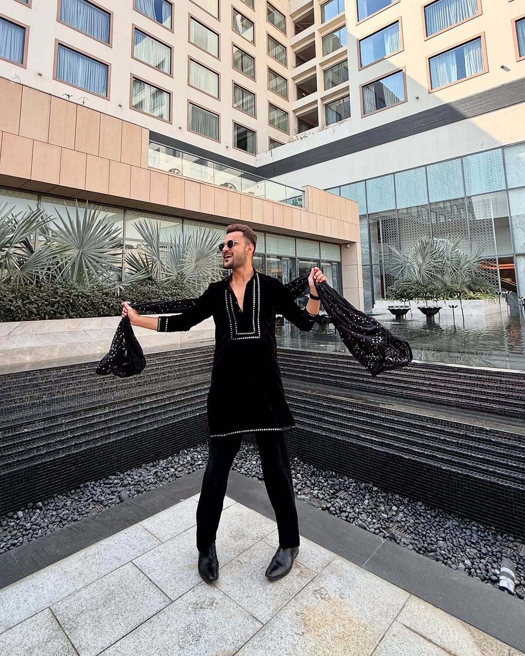 BLACK MIRROR WORK KURTA,PAJAMA AND DUPATA