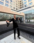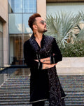 BLACK Color Men's Kurta Pajama AND DUPATA Set in Soft Silk With EMBROIDERE Work on Neck Having Some Richness in Our Traditional Indian Mens Kurta Pajama Set .