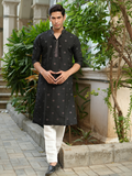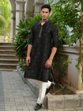 BLACK SEQUENCE EMBROIDERY WORKED MEN'S KURTA + BLACK PAJAMA