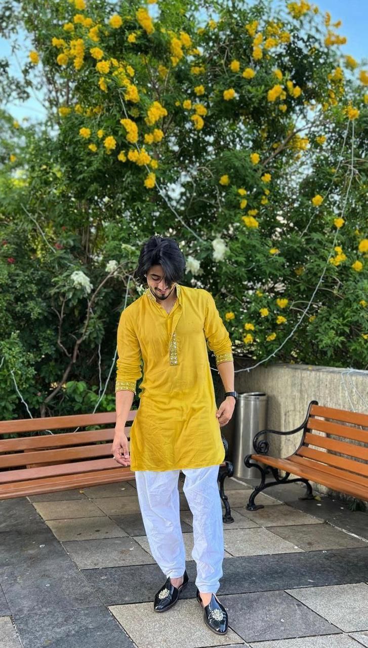 Dark Gold mirror work embroidery kurta. Comes with pajama.