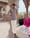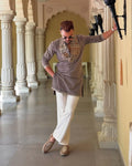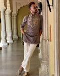 ELEPHANT Ironside Grey Neck Embroidered Work Men's Kurta with Pajama