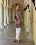 This ELEPHANT Ironside Grey Neck Embroidered Work Men's Kurta with PajamaIs Created by mark kurta ,This Hand-stitched Kurta Is Made of 100% Pure Cotton Fabric With Having embroidered work Over It. Our Attractive embroidery Add More Charm to Your Look, Wear This at Any Time Because the Fabric Is So Smooth to Skin That You Will Love It.