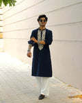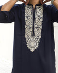 EMBROBLUE V NECK EMBROIDERED THRED KURTA WITH PAJMA