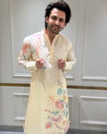 This WHITE LOTUS PRINTED WORK KURTA WITH PAJAMA SET FOR MENS Is Created by MARK kurta ,This Hand-stitched Kurta Is Made of 100% Pure Cotton Fabric With Having Hand digital Printed Prints work Over It. Our Attractive Prints Add More Charm to Your Look, Wear This at Any Time Because the Fabric Is So Smooth to Skin That You Will Love It.