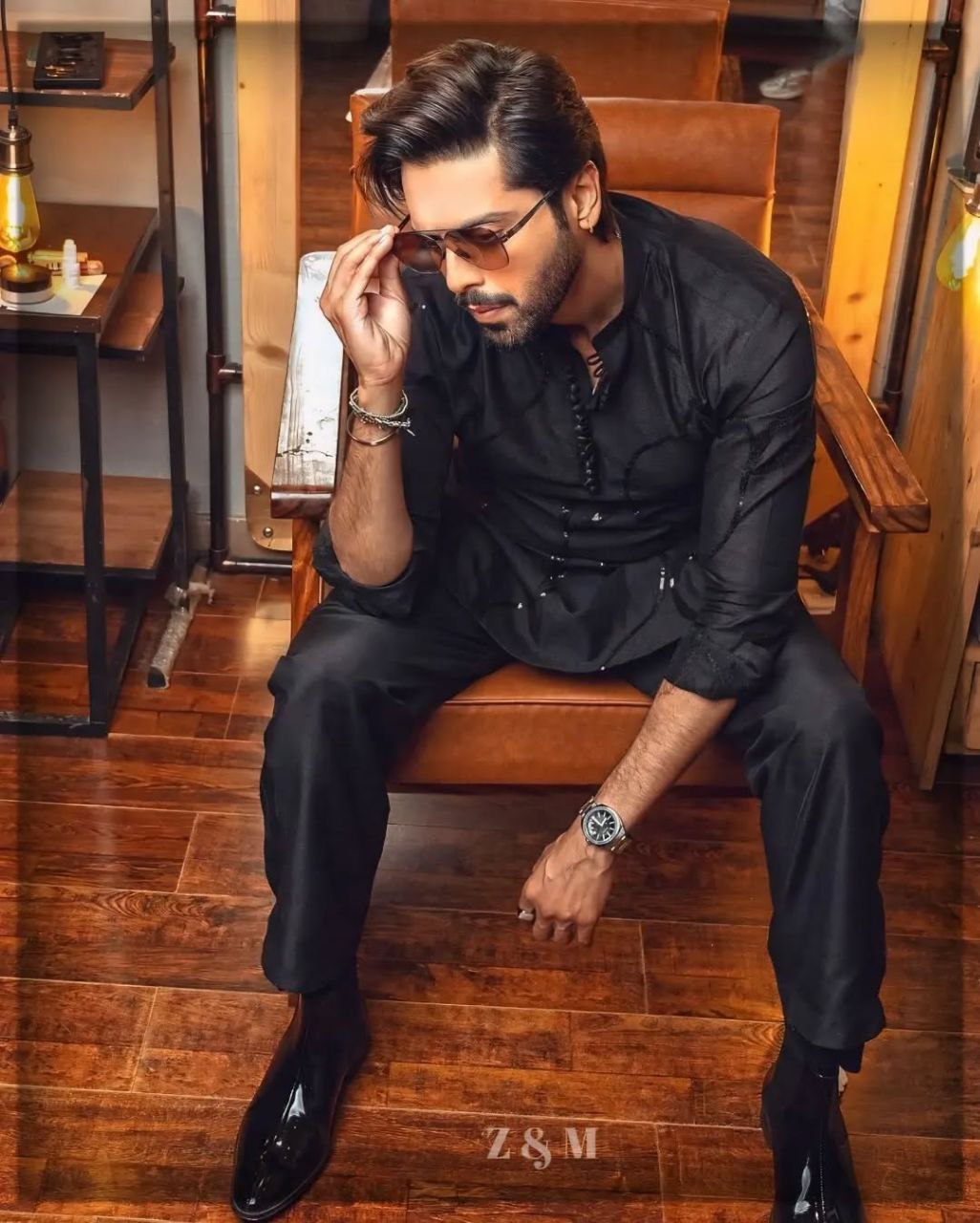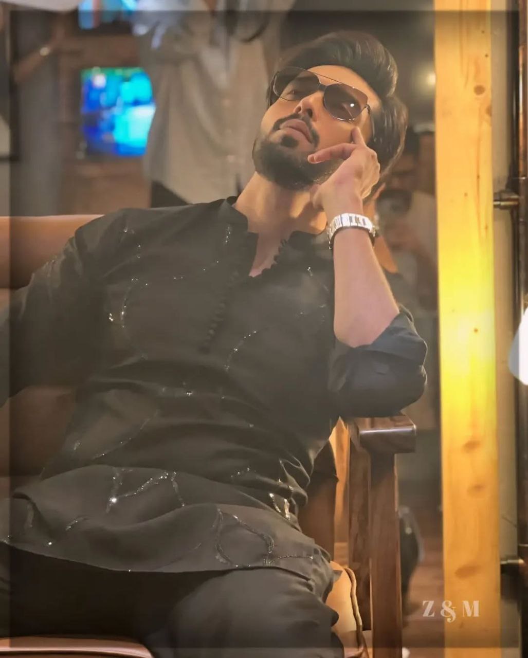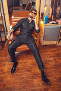 MEN'S SEQUENCE EMBROIDERED BLACK KURTA PANT SET