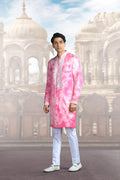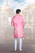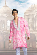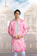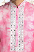 PINK Neck Embroidered Work Men's Kurta with Pajama