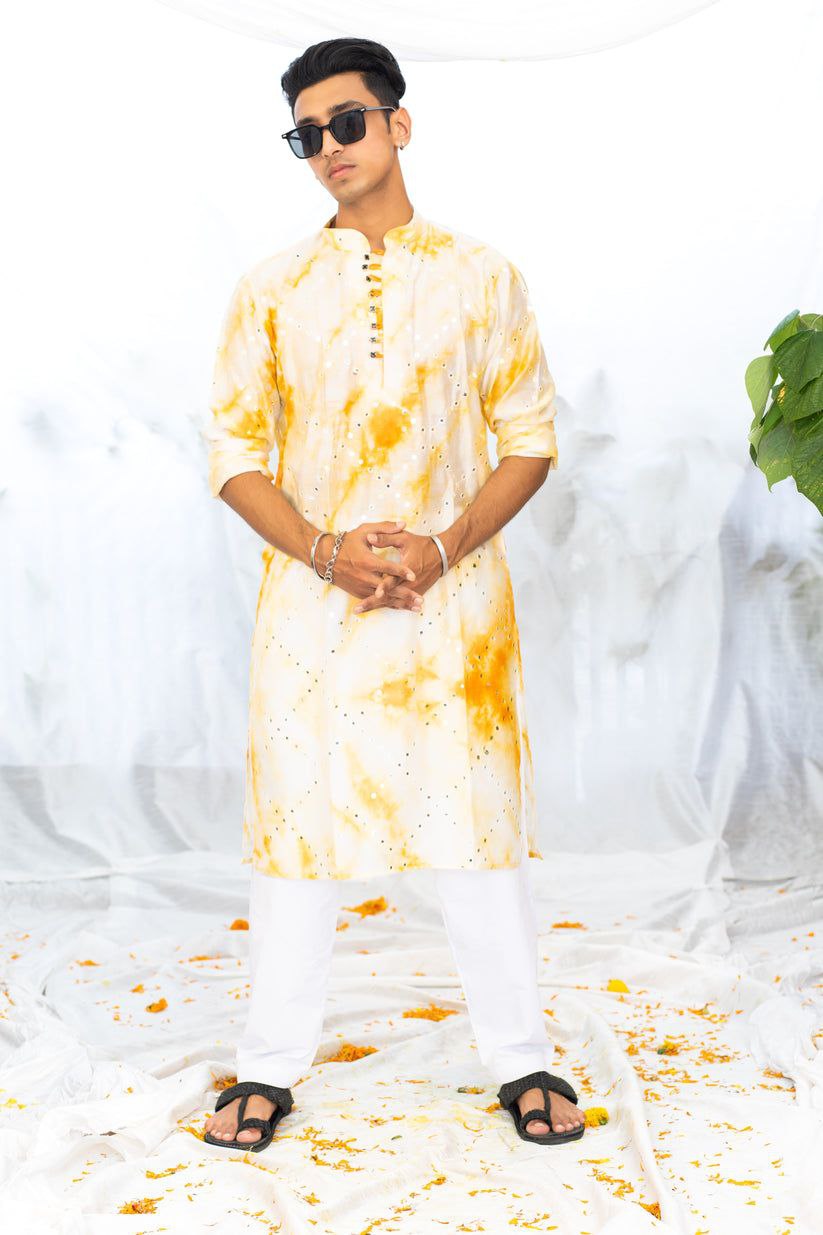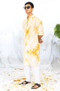 FUCHSIA YELLOW SILK TIE & DYE KURTA PAJAMA SET FOR MEN'S