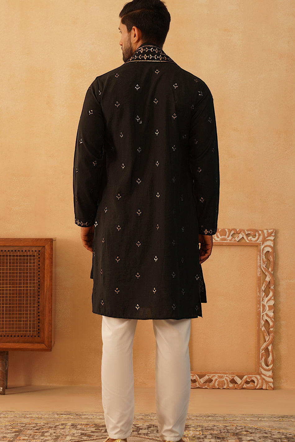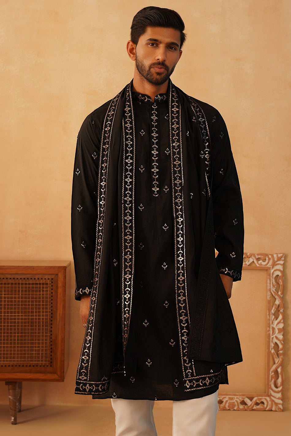 This KURTA ZONE black KURTA, PAJAMA AND DUPATA Created by KURTA ZONE This Hand-stitched Kurta Is Made of 100% Pure Cotton Fabric With Having embrodry havy work Over It. Our Attractive Prints Add More Charm to Your Look, Wear This at Any Time Because the Fabric Is So Smooth to Skin That You Will Love It.