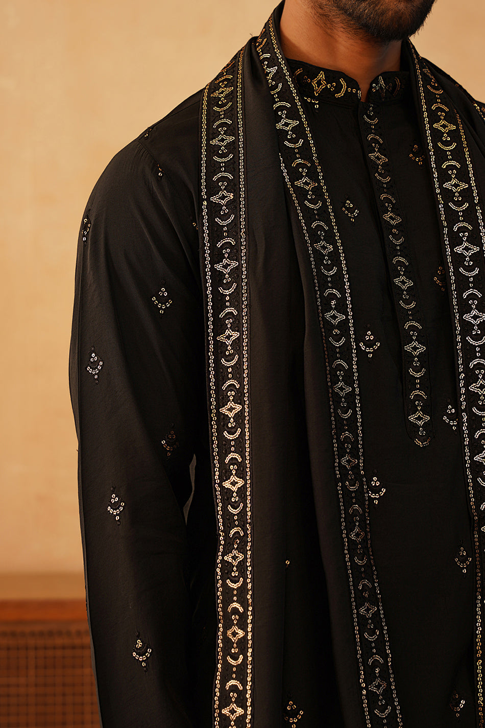 Stylish Black KURTA, PAJAMA AND DUPATA
