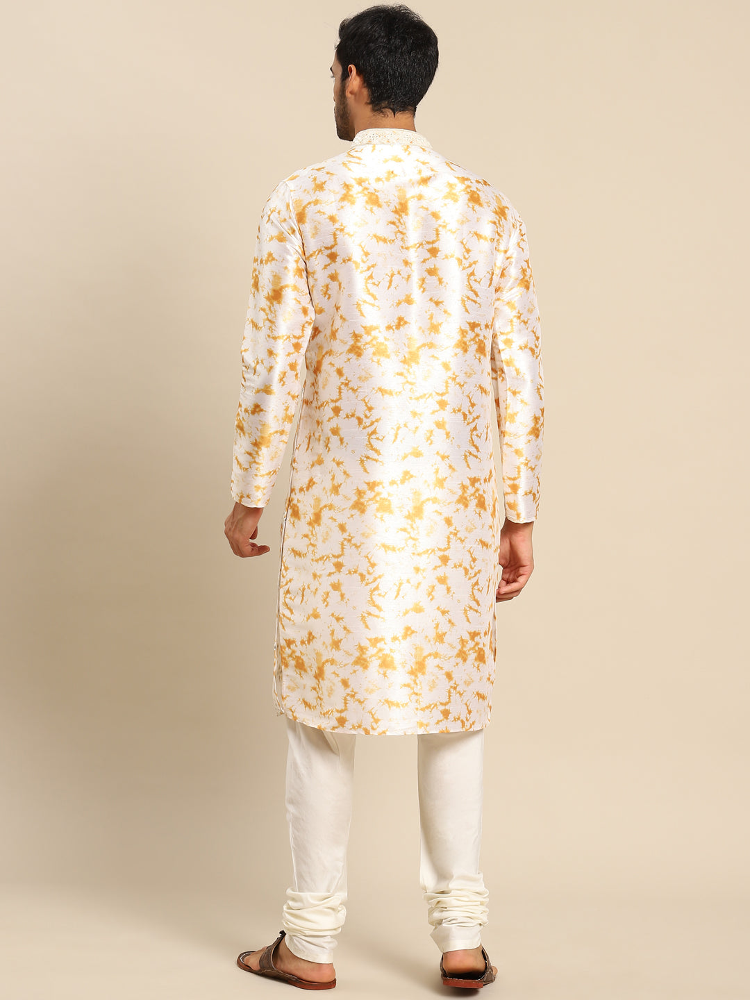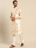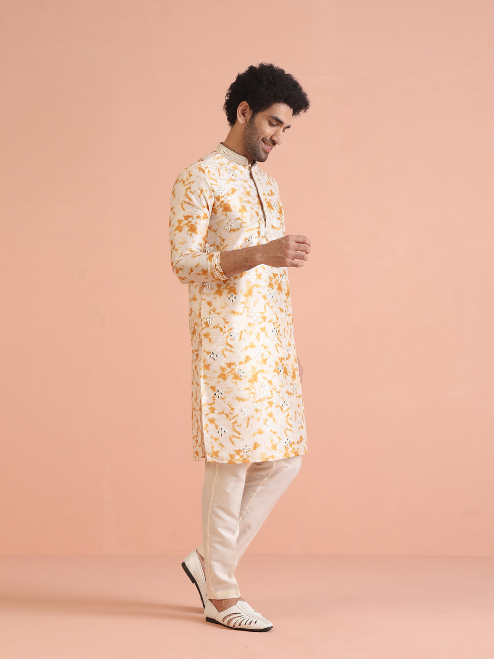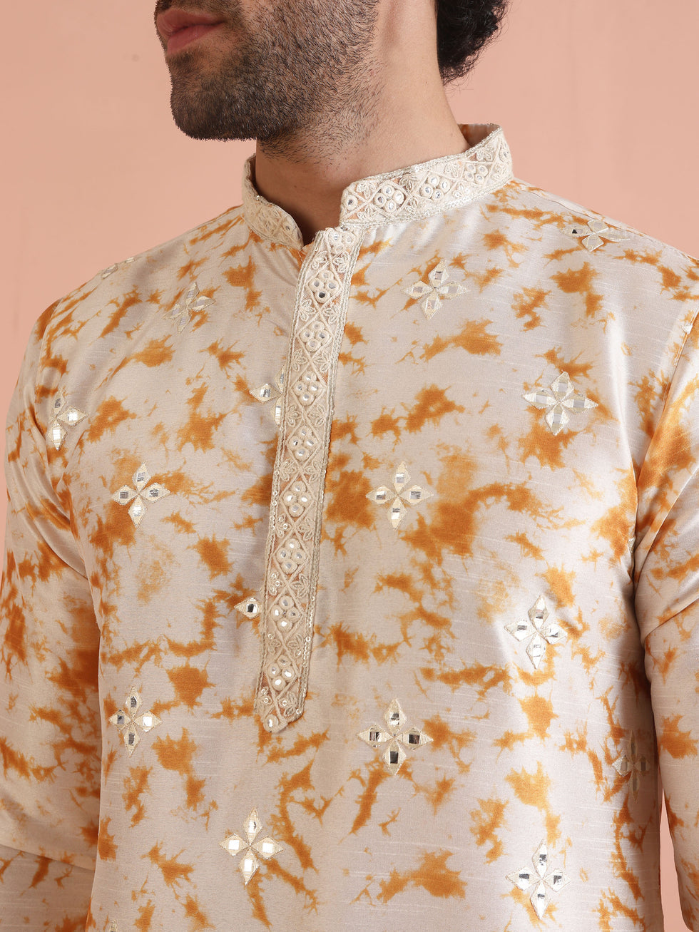 his TIE AND DIE MIROOR YELLOW KURTA WITH PAJAMA Created by MARK KURTA ,This Hand-stitched Kurta Is Made of 100% Pure Cotton Fabric With Having embrodry havy work Over It. Our Attractive Prints Add More Charm to Your Look, Wear This at Any Time Because the Fabric Is So Smooth to Skin That You Will Love It.
