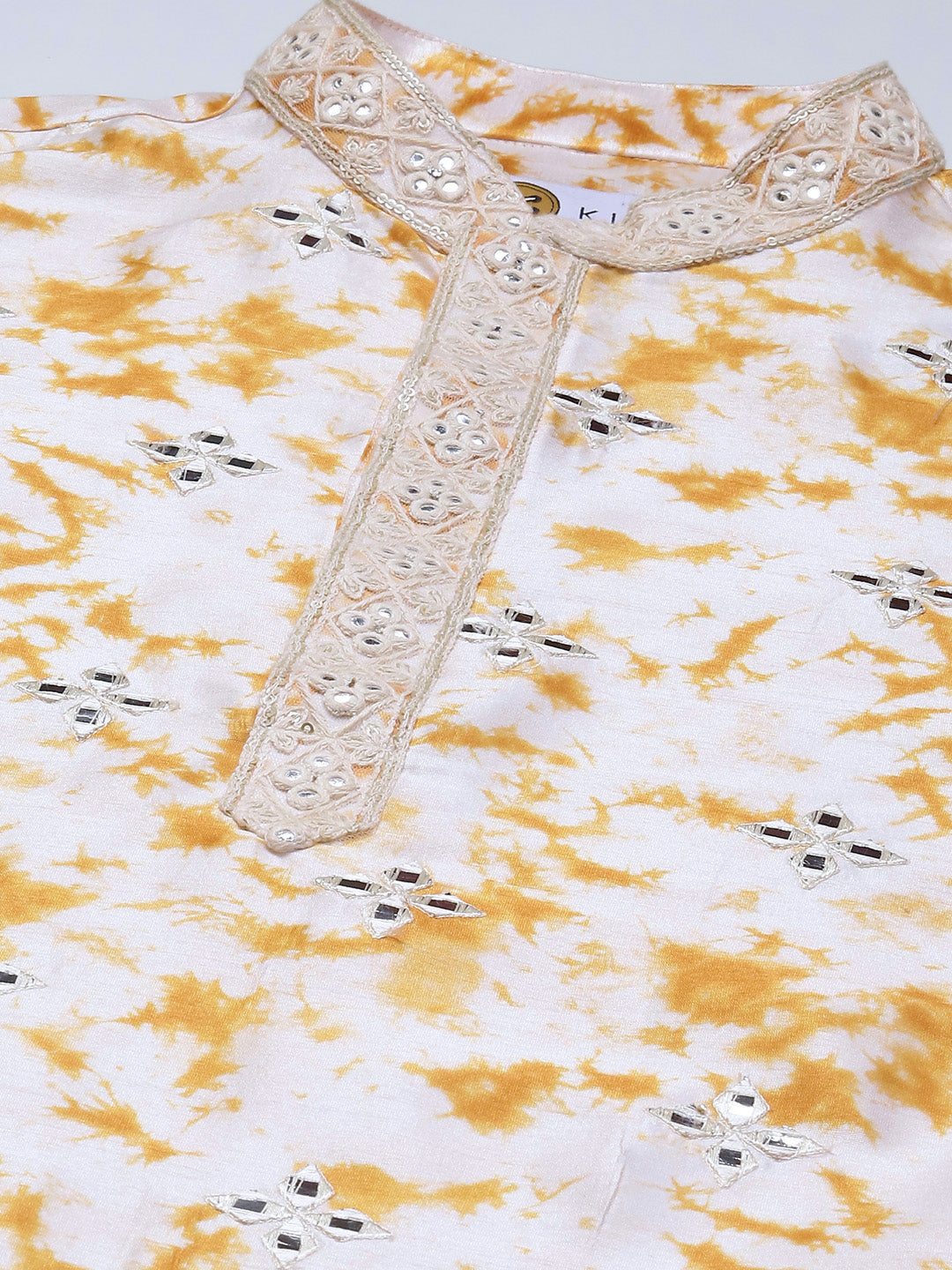TIE AND DIE MIROOR YELLOW KURTA WITH PAJAMA