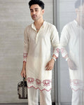 White Lotus Embroidered Men's Kurta With Pajama