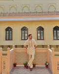 WHITE NECK HAND WORK MEN'S KURTA WITH PAJAMA SET