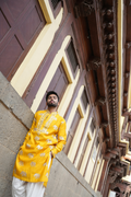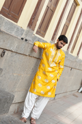 YELLOW ELEPHANT NECK EMBROIDERED WORK KURTA PAUJAMA SET FOR MEN'S